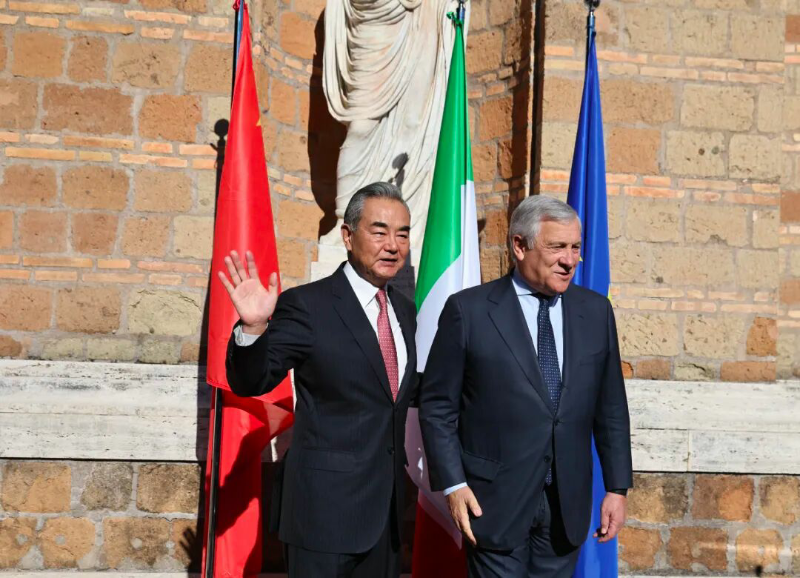 王毅说,中意是支持自由贸易的两大经济体、维护多边主义的两大力量、倡导交流互鉴的两大文明古国。在国际形势变乱交织背景下,中意应展现责任担当,顺应时代潮流,始终相互信赖、共同成就,秉持开放精神做大做优务实合作,以丰富的合作成果为各自经济发展和两国人民福祉作出更大贡献。
