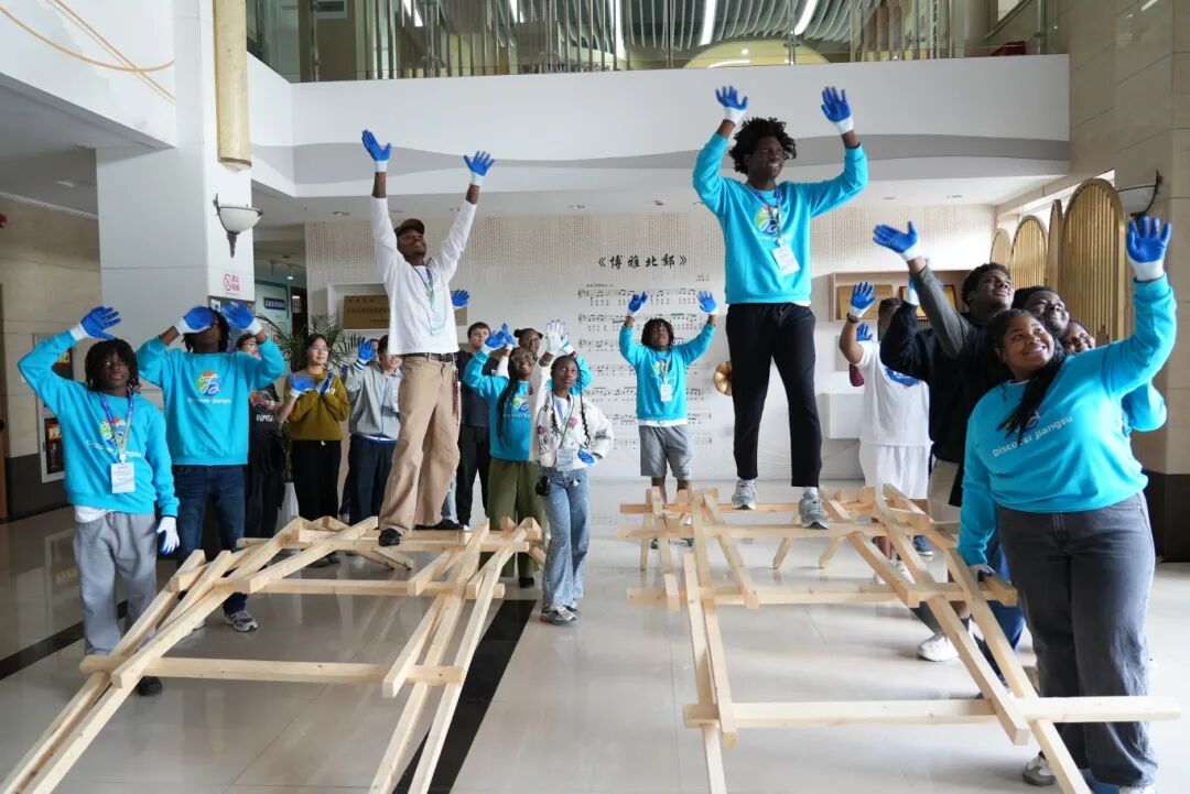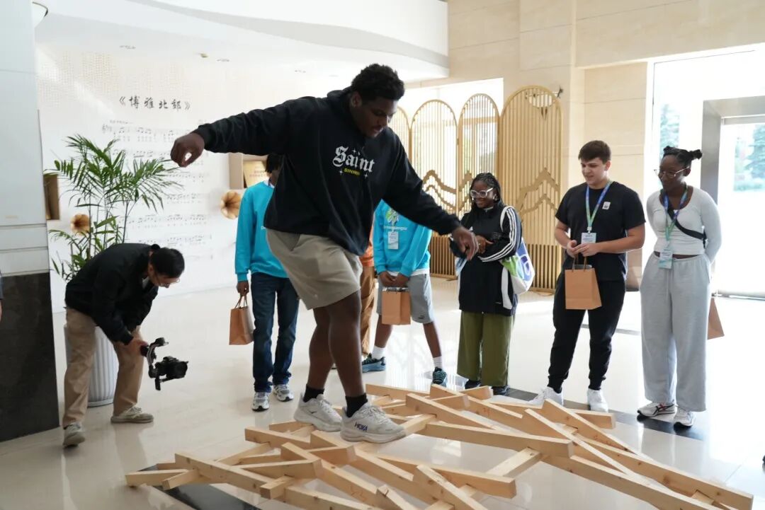 在常州市北郊高级中学,中美学生携手搭建传统榫卯结构鲁班桥,这一源自中国古代工匠智慧的协作项目,成为跨越语言障碍的情感纽带。“互相支撑,合则稳固。这小小的鲁班桥,不正是中美青少年友谊的缩影吗?”北郊高级中学学生冯淳熙忆起当时情形很有感触。