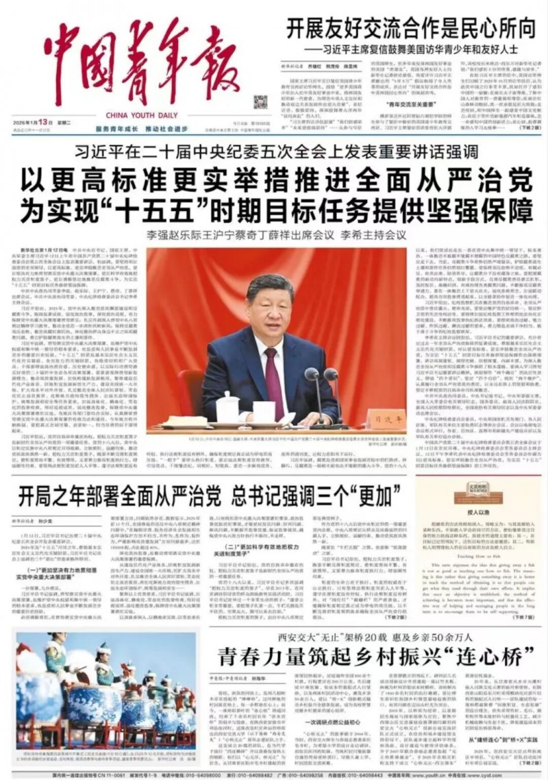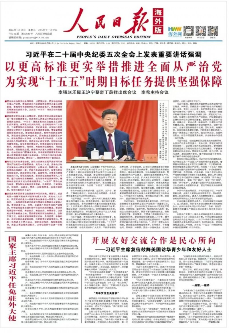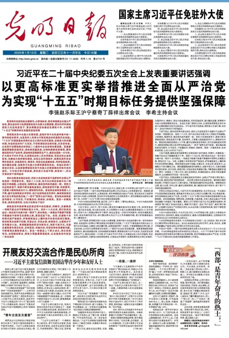 1月13日,人民日报海外版、光明日报、中国青年报等头版转载新华社通讯,以下为报道原文。